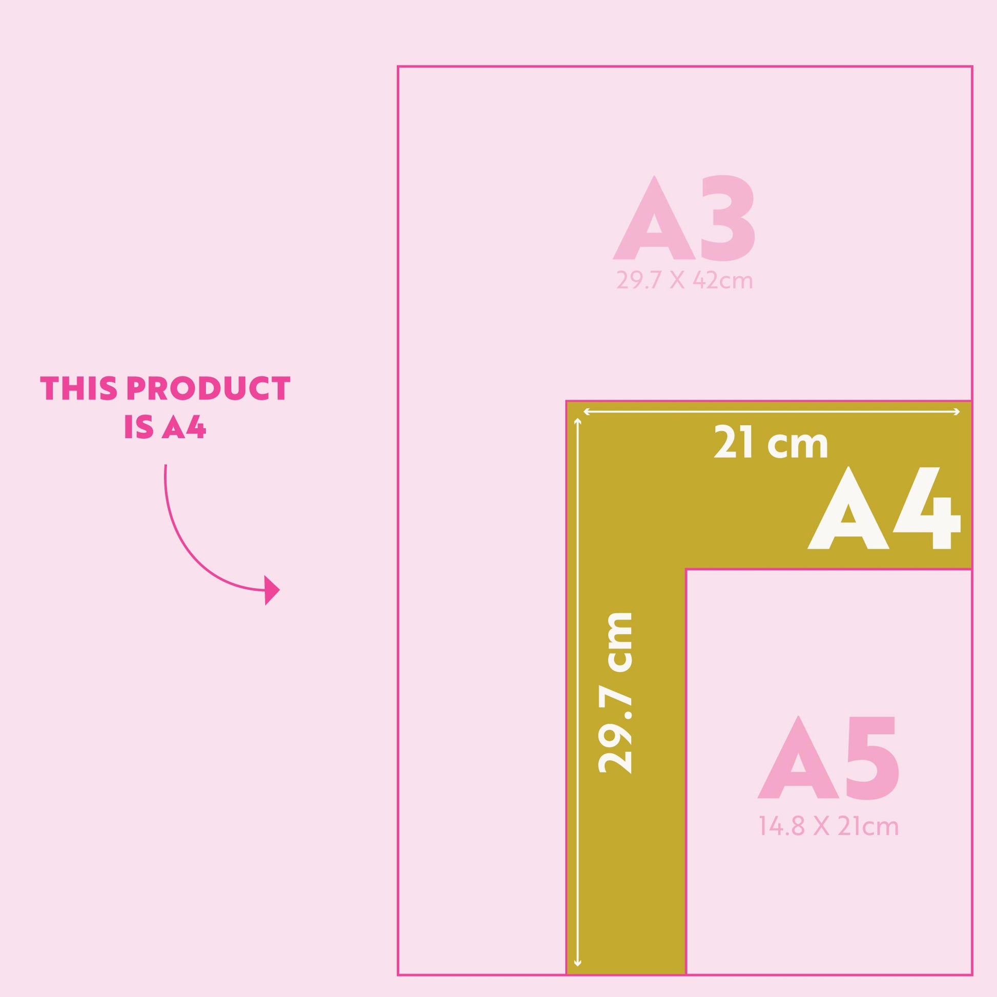 • A4: 29.7 x 21 cm // 11.7 x 8.3 inches