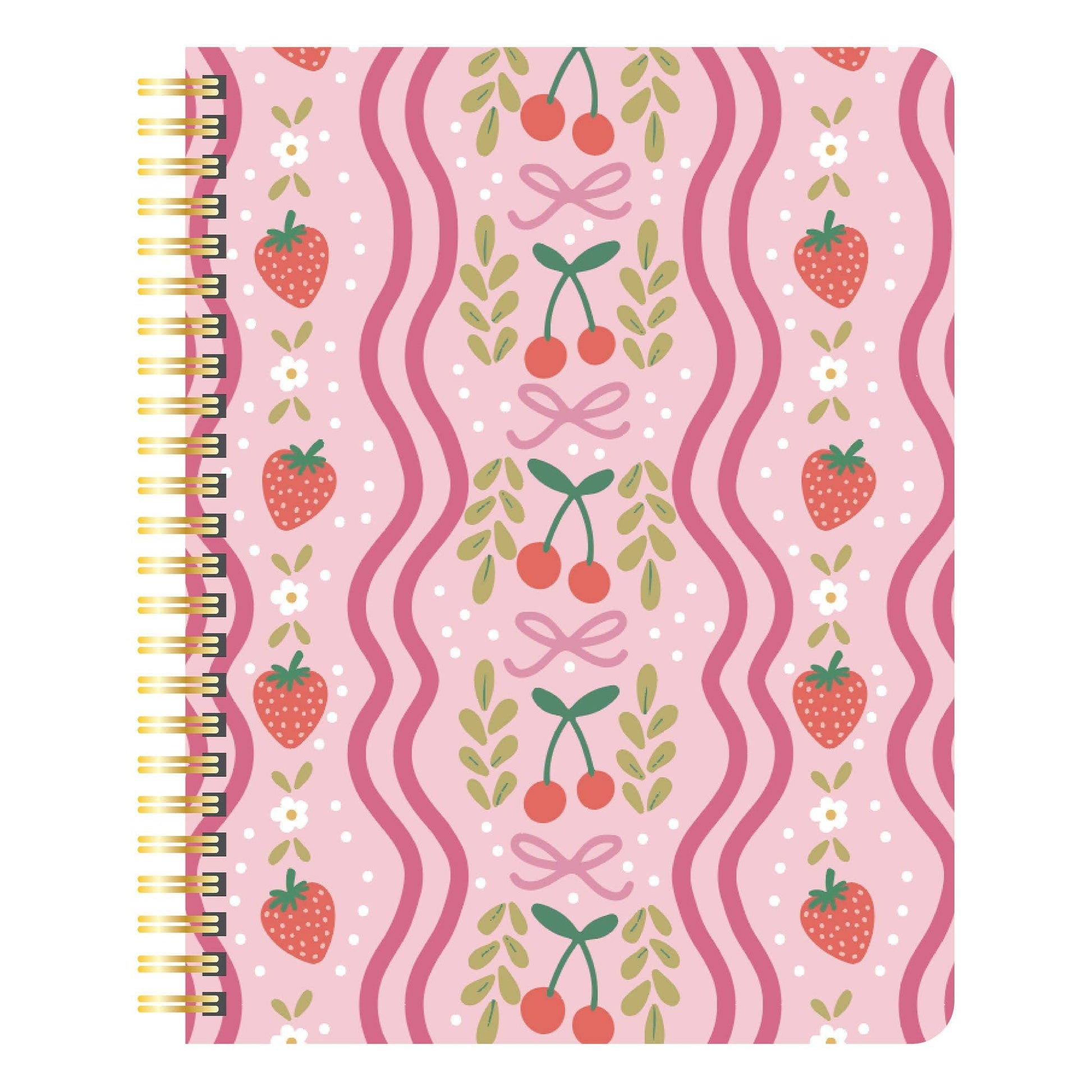 Juicy strawberries, cheerful cherries, dainty bows, and ditsy florals make this Berries & Bows Spiral Notebook almost too cute to use… almost. Whether you’re journaling your day, jotting down class notes, or making grocery lists, this berry sweet notebook adds a pop of playful charm to your desk or backpack.