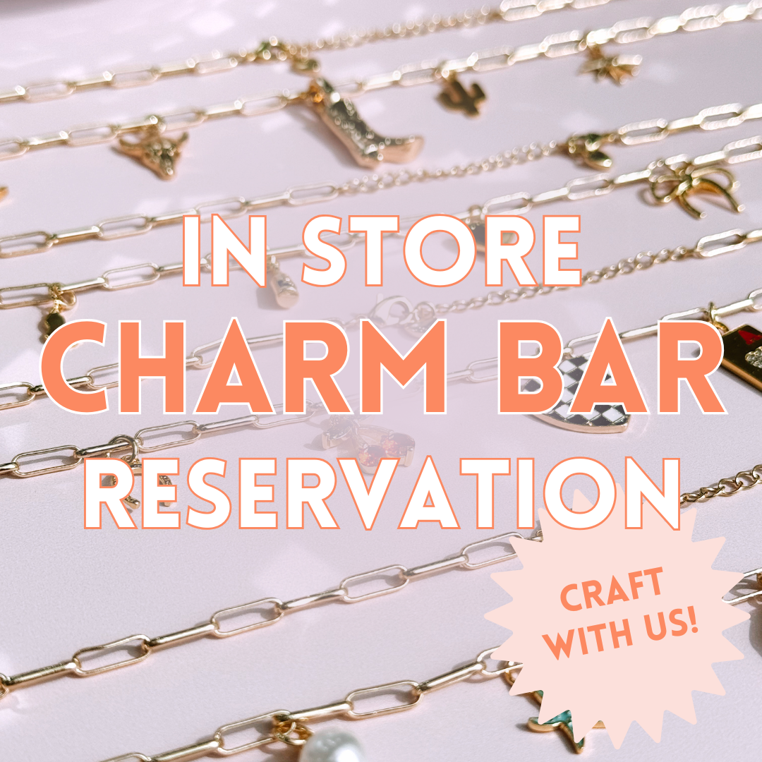 Reserve your spot(s) at the Charm Bar in the DIY Craft Lounge at Golden Hour Designs. Reservation of your spot at the Charm Bar includes 45 minutes of crafting time & access to the DIY Craft Lounge, with standby support from a GHD team member!