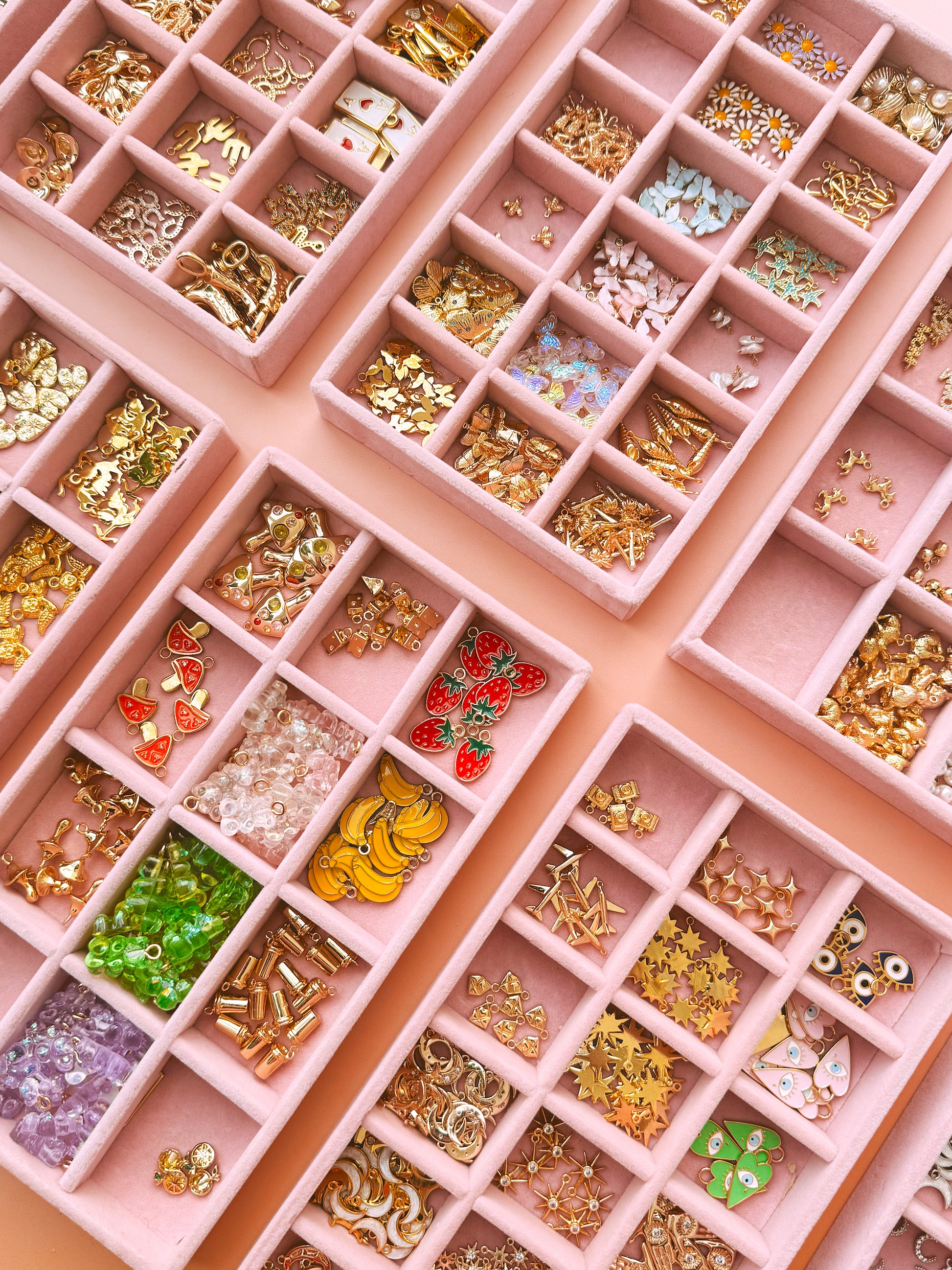 Every necklace or bracelet includes a chain of your choice and 5 charms, with the option to add extra charms a la carte ($5-9 each). Choose from 150+ different charm styles!