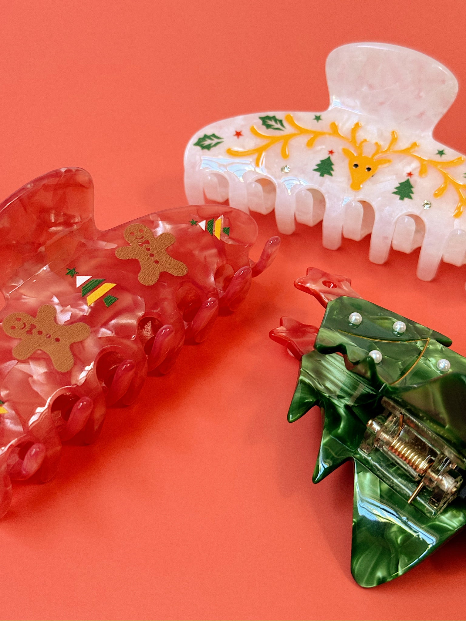 Celebrate the season with the Gingerbread Man Hair Claw Clip! This playful accessory is perfect for holiday parties, keeping your hair secure while spreading merry cheer with every wear.