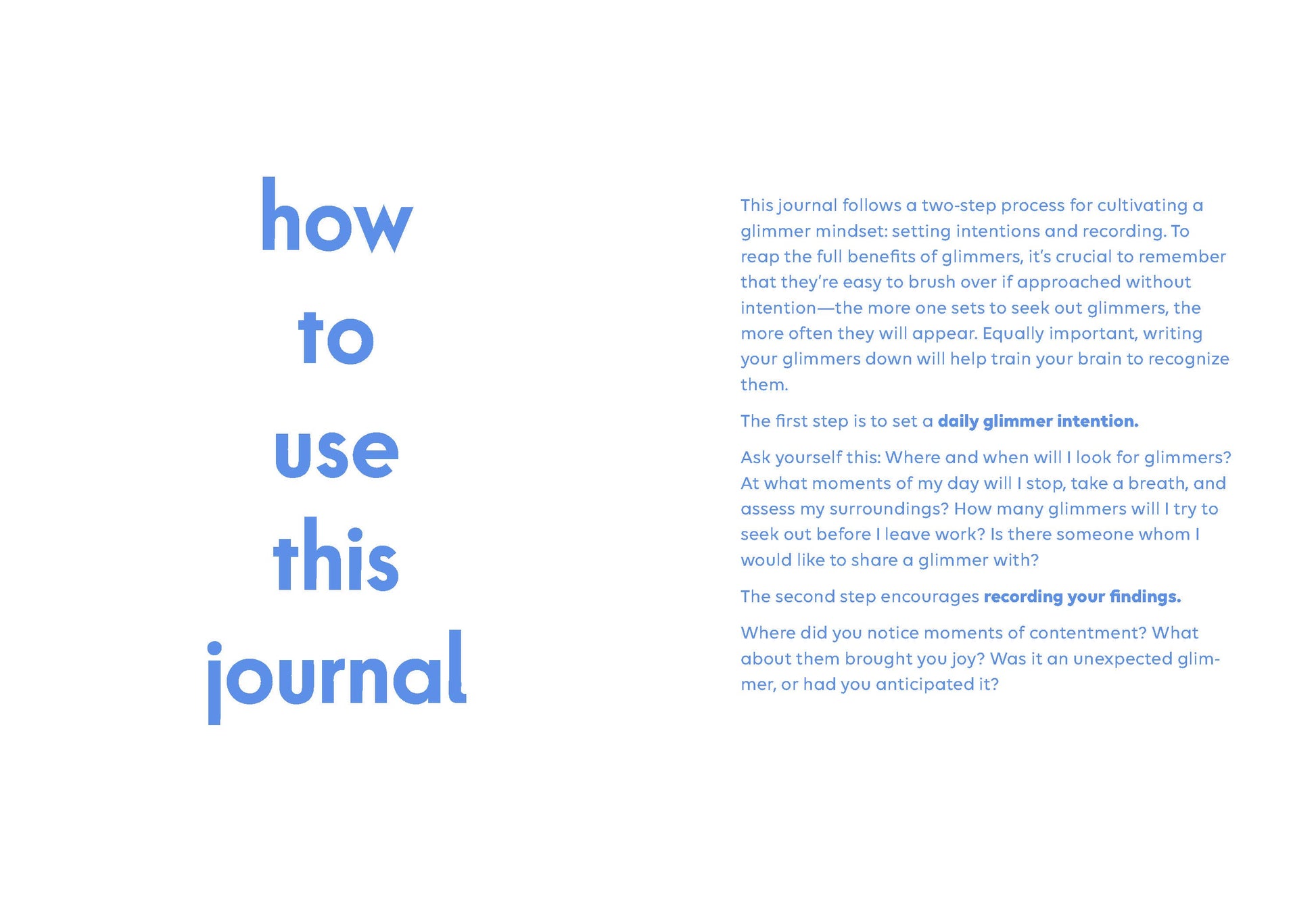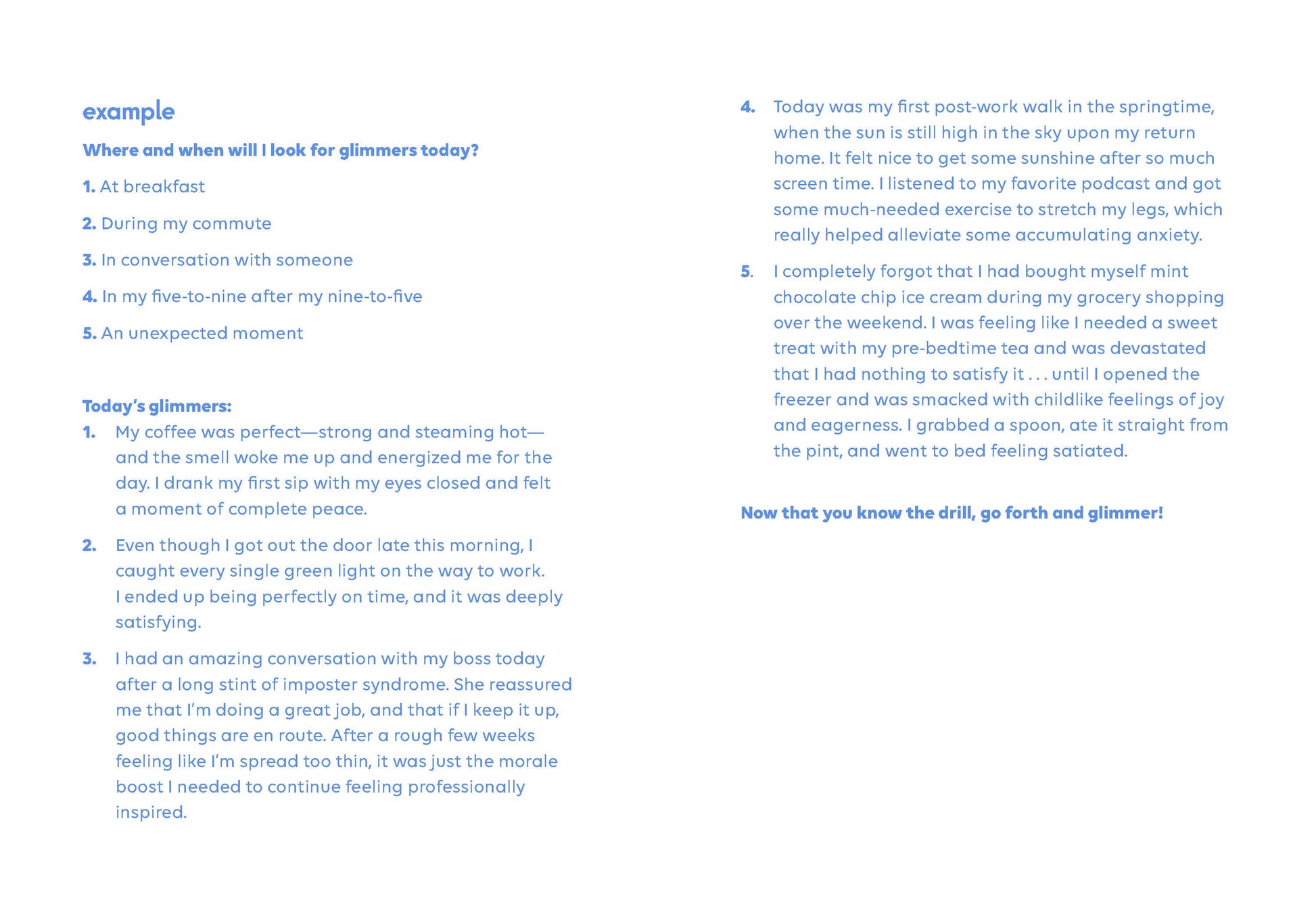 A fresh take on the gratitude journal that helps you cultivate joy every day by noticing and celebrating 'glimmers' small daily highlights that brighten your life.