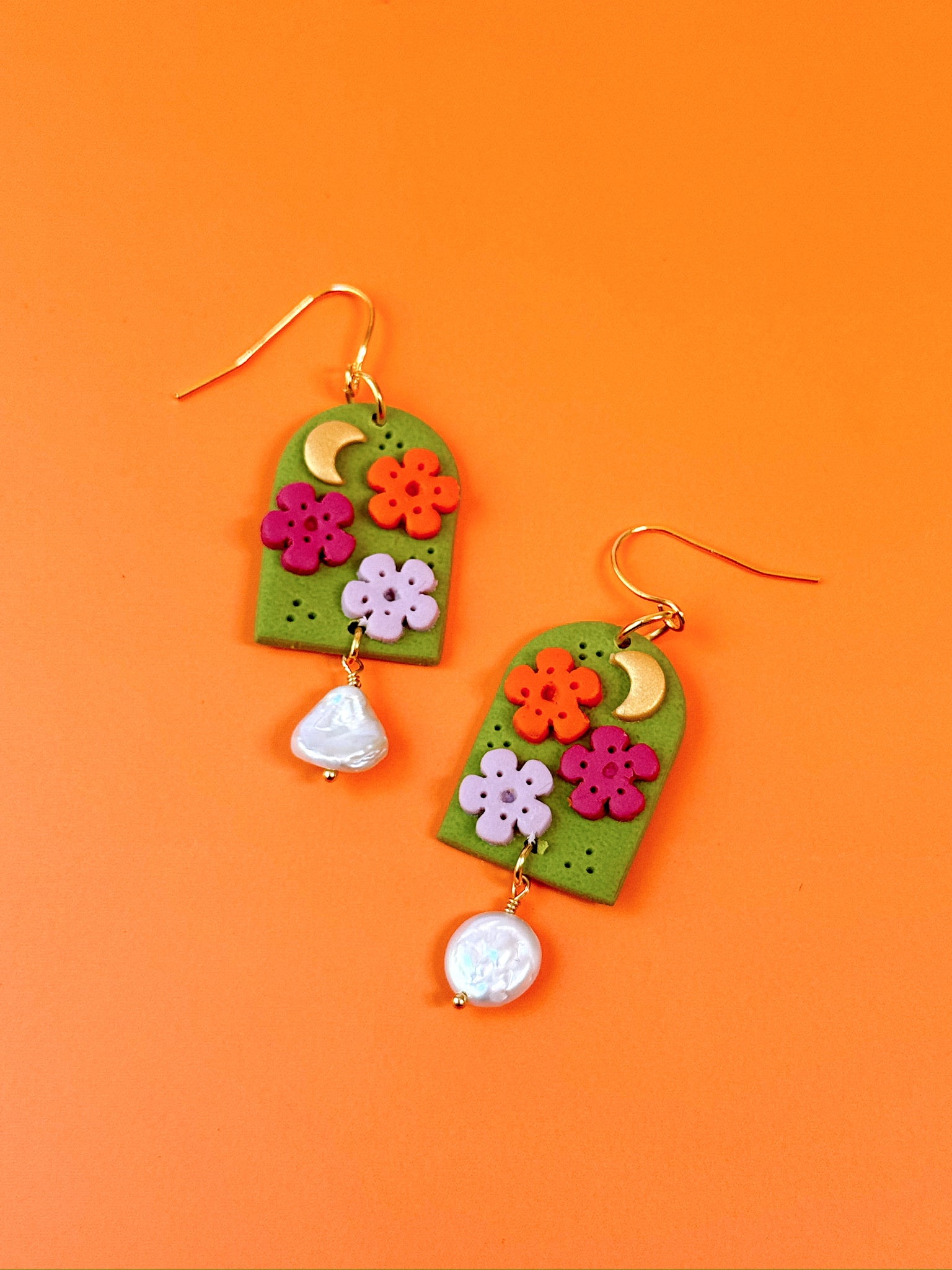 All items are made with love in Sacramento, CA. Earrings come on our plated findings that are simple, lightweight and super comfy for all day wear.