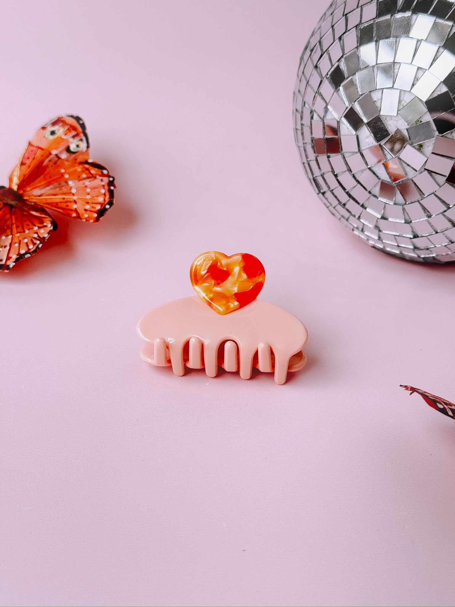 Add some sweet style to your hair with our Mini Sweetheart Hair Claw Clip! This adorable, sturdy clip features a marbled heart design and comes in two color options. A cute and reliable accessory for any occasion.